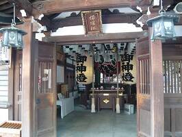 末社の楠珺社です。お稲荷さんです。商売繁盛、家内安全の神さまです。大阪と言えば商人の街ってイメージがあるので、みなさんお参りにくるんですかね。 |