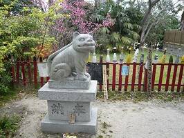 | 奥にいた違和感のあるヤツ。狛犬じゃないね完全に虎だね。江戸時代から祀られていたみたいなので、その頃から大阪=虎だったのかしら。明治の神仏分離で一方が滋賀県に移され、長らく片方だけだったらしいけど、地元有志が一対にしたら阪神が優勝するんじゃないかってことで奉納。なんと、本当に18年ぶりに優勝しちゃったらしい。 | ![]() |