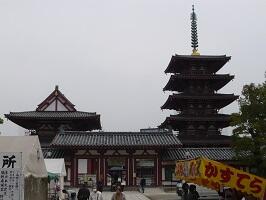 大阪のお寺と言ったらここに来ないと。有名すぎる聖徳太子が建てた日本最初の本格寺院と言われるお寺。歴史で習った蘇我氏と物部氏がどうたらこうたらと言ってた時代。この争いに勝って四天王寺を建立。聖徳太子の凄いのは、後の病院、学校、孤児院・老人施設の元となるものを作ったことでしょう。 |