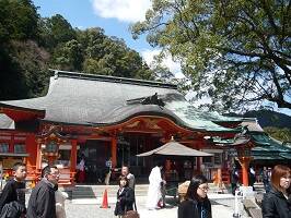 熊野本宮大社は茅葺き屋根に渋い木の色が素敵だった。熊野那智大社は一転、朱色鮮やかな社殿。まぶしいくらいでした。ちと意外だなと思ったのは、境内が思ったより広くなかったこと。とは言っても那智大滝も辺り含めて境内だろうからとても広いんだと思うけど、社殿周りがって言ったらいいのかな。 |