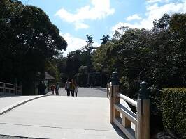 月夜見宮から歩いてすぐ、「伊勢市」駅からもすぐやね。外宮です。伊勢神宮は外宮→内宮の順に参拝するらしい。伊勢神宮のお祭りが、まず外宮で神様のお食事をお供えしてから内宮へってのにならってるらしい。伊勢神宮って内宮と外宮が同じ時期にできたと思ったら、500年近く外宮のが後に造られたらしい。 |