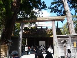 内宮と外宮では社殿の屋根が違うらしい。内宮は千木(屋根の両端にツノみたいに尖がってるやつ)が内削ぎ(カット面が地面と水平)、鰹木(屋根の乗っかってる小さい丸太みたいな棒)が偶数(10本)、外宮は千木が外削ぎ(カット面が地面と垂直)、鰹木が奇数(9本)。(表現が拙くてごめんなさい) |