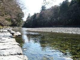 手水舎のそばにある五十鈴川。昔はこの禊川で清めてから参拝したとか。その後、川の水が汚染され清流や湧き水が確保できなくなる場所が増え、それに代わるものとして手水舎が登場したらしい。その歴史は意外と短く、江戸時代辺りらしい。で、最初に設置したのが日光東照宮と言われているみたいです。 |