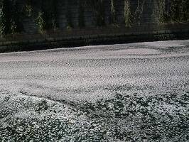 川面に浮かぶ一面の桜の花びら。きれいなー。ぷちだぼんのママさん達も喜んでくれたようで何よりです。それ以上に楽しんでしまった感は否めないけど。 |