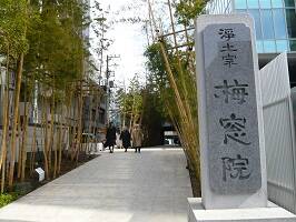 「外苑前」駅のほんと目の前がこの景色。徒歩数歩ですね。竹をあしらった雰囲気ある参道。梅窓院って名前から想像するに素敵なお庭なんかがあって・・・、と思ってた。が、参道を抜けるとあれれ?ガラス張りのビルとお墓しかないぞ。なんと、ガラス張りのビルの中が本堂? |