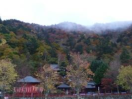 この日は小雨がぱらついたりする生憎の天気で時間も遅かったので、スカッと晴れたらお寺の上の方にある五大堂から見る中禅寺湖とかきれいなんだろうなって感じがした。でも、霧がかかっているのもなかなか幻想的でよかった。 |