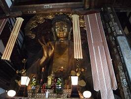 日本三大大仏を名乗る正法寺。初耳ですけど?奈良の大仏、鎌倉の大仏のツートップは誰もが認めるけど、3つ目が事実上空位となっているのが今の一般的な考えらしい。江戸時代には京都の方広寺にあったらしい大仏がランクイン(?) していたが今はない。戦後には兵庫の能福寺の兵庫大仏がランクイン(?) したが、太平洋戦争時に金属類回収令で供出され解体。平成になって再建されたが歴史が浅いため三大に入るにはちょっと・・・ってことで現在は空位に。二大大仏でよくね? |