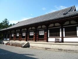 唐招提寺は他の京都・奈良のお寺とはちょっと違う雰囲気。観光地感がないのよね。だから案内板とかも少なく、油断すると見落としたりするんで要注意。こちら経蔵(たぶん)似た建物で宝蔵があるのでたぶんと書いとく。唐招提寺で最も古い建造物で、日本最古の校倉(あぜくら)だと。 |