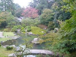 紅葉には若干早かったせいか、人もほとんどいなくて、のんびりお庭を堪能できました。なにやら紅葉の頃には夜間拝観でライトアップもやっているらしい。夜間拝観って結構幻想的でいいのよね。普段なかなか夜なんか見れないし、ライトアップの仕方がまぁ素敵なのよね。 |