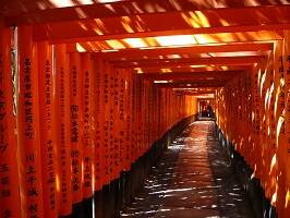 有名な千本鳥居です。江戸時代に鳥居を奉納するのは流行ったらしい。でもなんで稲荷神社でばかり見かけるんだろう。やっぱり江戸時代に稲荷神社信仰が流行ったって言うからそのせいなのかなぁ。ちなみに伏見稲荷大社全体で一万基くらいの鳥居があるらしい。 |