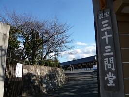 本堂内拝観後、三十三間堂の周りを見てまわる。やっぱり長いよ。江戸時代こちらのお庭(って言うのかな?)では、有名な通し矢が行われていた。京都の住所って変わってるけど、三十三間堂廻り町ってなかなかだね。三十三間堂ら辺ってことかな? |