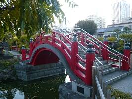 亀戸で一番有名な神社(と私が思っている)亀戸天神社。藤まつりで有名で4月下旬から一斉に咲き始め「東京一の藤の名所」と呼び声高い。心字池とのコントラストもまた良し。この藤の花は江戸時代に植えられたようで、浮世絵にも書かれているとか。ライトアップもされるんだって。また、梅まつり、菊まつりもあるらしい。 |