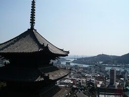 尾道七佛めぐり のひとつ天寧寺へ。三重塔で有名で尾道を象徴する景色のひとつですね。この景色を見るのは山側から降りてこないとダメなんで、ぐるりと辺りを歩くことをおススメします。尾道ってほんと坂の街でくねくねと入り組んでるのよね。それがまたいい味出しているんだけど。 |
