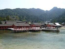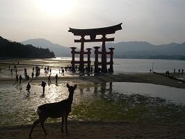 宮島に上陸して宿にチェックインして、時間が早かったのでさっそく厳島神社に行ってみる。ほぇ〜本当に海に建っているんだ〜。きれいだわぁ。でもやっぱり人多いわぁ。有名観光地だもんね、参道の商店街の店の量も凄かったし、人の量も凄かった。外国の方も多かったね。 |