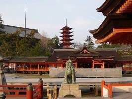 中に入ってみると朱色が眩しい。回廊とか素敵だし、昔の人ってセンスあるよなぁ。それにしても水に浸かっていると痛みも早いんじゃないだろうか。メンテナンスが大変そうだ。ちなみに海に建っている大鳥居は自分の重さだけで建っているんだそうだ。島木、笠木の部分に大量の石が詰め込まれているだって。近くで見ると地面近くはものすごく太い。筋肉質な感じ。 |