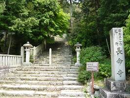 近江八幡駅からバスに乗って20分ちょっと。始めはおばちゃんたちも乗ってたけど、近江八幡の水郷巡り乗り場辺りで降りて行った。で、終点長命寺までは一人だった。 階段の脇にある看板には、本堂まで808段とあります。正直甘く見てました。日頃の運動不足ってのもあったと思うけど、気持ちだけは昔のままで・・・。 |