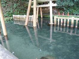 奥宮の反対側辺りから下っていくと御手洗池(みたらしのいけ)があります。誰が入っても、同じ深さの池と言い伝えられてるんだって。大人が入っても子供が入っても、乳を越えないと言われているんだそうです。謎だ。 |