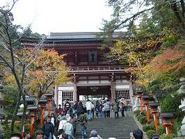 こちら鞍馬寺の仁王門。「鞍馬」駅を出てすぐにある。なんだかこの後、長い階段が待っていそうな期待と不安が。やっぱり人が多いですね。そんな中に何故かすでに酔っぱらっていい気分のおにーさん・おじさん軍団が・・・。妙になんだか楽しそう。 |
