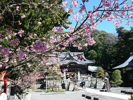河津桜を見た帰り、伊古奈比咩命神社へ寄ってみる。社号標には「伊古奈比咩命神社」、鳥居には「白浜神社」。う〜ん、杉桙別命神社(河津来宮神社)といい、複数呼び名があるのが分かりづらい。しかも「咩」が文字化けするし。伊豆で一番古い社だそうだ。 |