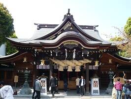 九州の下の方と左の方を巡る旅の最後の町、博多。まずは福岡県用御朱印帳ゲットのため、櫛田神社へ。中州近くの街中にあり、この日は土曜日ってのもあって、おそらく地元の人たちで賑わっていた。さらに、社務所の方では神社関係者の花見なのか、何かの準備なのか大勢集まって宴会が始まろうとしていた。 |