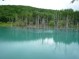 さらにまっすぐ白銀温泉方面へ走って、白銀温泉に着く少し手前、行ってみたかった「青い池」。ここって口コミで広がって最近観光客が増えてきたらしい。ココはちゃんと駐車場が整備されてた (され始めてただろうか) けど、もちろん無料!写真でもキレイだけど、実際に行ってみると感動! |