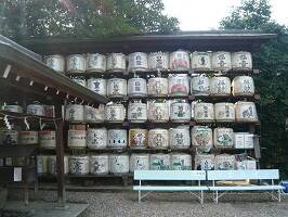 梅宮日本第一の碑がありますね。勉強不足で梅宮って・・・何ですか?検索しても梅宮アンナとか梅宮辰夫とか・・・。すみません。 楼門に酒樽が奉納されていますね。梅宮大社も酒造之祖神で安産の御利益があるのでも有名ですね。 |