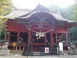 岡崎と言えば家康だろうってことで、徳川家に関連するところを中心に巡ってみた。まずは南口から5分弱六所神社。立派な門があったけど、急な階段を登ったところにあるため、写真を撮るのが難しい。右の写真が拝殿。どちらも朱色よりやや暗い色づかいかな?気のせいかな? |