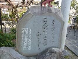 東海道一の長藤で有名な神社らしい。 昭和20年7月に戦災により本殿と共に焼失するも根の一部が生き残り、昭和42年新社殿造営の際、棚を設け育てると往時を偲ばせる立派な長藤に成長したんだそうな。 右の石碑の白維字で書いてある内容です。 |