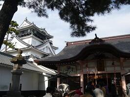 岡崎城本丸に鎮座する龍城神社(たつきじんじゃ)参拝したときは建て替え中で仮御殿での参拝だった。正月ってことでかなりの人出でお参りするにも少々行列に並ばなくてはならなかった。授与所も混んでいて御朱印頂くのも一苦労。まぁ、有名なところだからね。 |