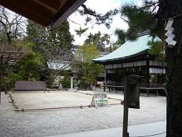 「蹴鞠保存会」ってのがあって、毎年4月14日と7月7日に奉納が行われるらしい。毎月二回日曜日に練習しているそうで、境内の鞠庭で練習風景も見れるのかな?それとも練習は別の場所なのかな?普段着で練習している姿って想像するとちょっと笑えるかも・・・すみません。 |