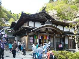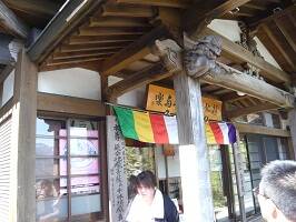 山形の「山」と山寺の「山」の形が違うのが面白いところ。金乗院の本尊は延命地蔵菩薩でございます。「ぴんころ車」ってのがあってでかい数珠みたいなのをクルクル回すんだけど、生きているときはピンとして逝くときはコロっと死ねるらしい。写真は混んでいたので撮れず。ちょうど手前の柱で隠れちゃてるわ。 |