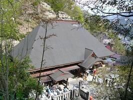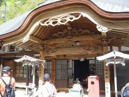 中性院(ちゅうせいいん)。上から見るとかなり大きい建物ってことが分かる。本尊は阿弥陀如来座像。山形城主の最上義光公、新庄藩の戸沢侯歴代の日牌所でもある。かなり高いところまで登って来てるので、ここからの眺めはなかなかよい。後に行った五大堂が大混雑であまり見れなかったので、混雑しているときはこの辺りでのんびりするのがよいかも。 |