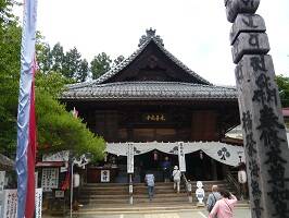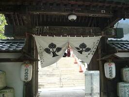 ちなみに正面の石段は工事中でした。もし車で行ってて足の悪い人がいたら、石段の左の坂を上ると数台の駐車場があるんで、そっちに停めると階段登らなく済みますよ。自分らだけだったら間違いなく正面から行くけど、今回は両親一緒だったんで、そっちに停めさせていただきました。工事中なんで正面からは無理だったんだけどね。 |