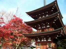 門から本堂まで石段で登るんだけど、更に右脇から石段を登ると三重塔がある。この周辺のモミジもまた見事で、塔とモミジの組み合わせが最高。なんでこんなにいいんだろう。ここ岡寺はシャクナゲが3000株植えられていて4月からGW辺りに咲き誇るそうな。モミジは最高の季節に来たから今度はシャクナゲの季節だな。 |