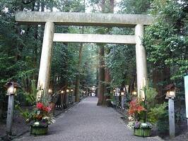 私の中ではかなり早い時間に着いたけど、参道は葉っぱひとつ落ちてなく完璧に清掃済。朝のうちは天気がイマイチだったうえに、光の加減で拝殿の写真は暗いものしか撮れなかった。あの清々しい空気を感じさせるような写真を撮るにはどうしたらいいんだろうか?まぁ、素人だからしょうがないね。 |