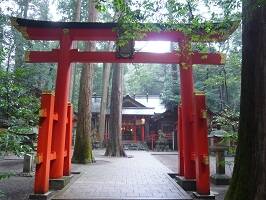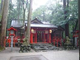 猿田彦の妻、天之鈿女命(アメノウズメノミコト)を祀る。岩戸隠れで天照大神が天岩戸に隠れて世界が暗闇になったときに、岩戸の前で力強くエロティックな動作で踊って、八百万の神々を大笑いさせたのが天之鈿女命。芸能の女神とされる。こちらの椿岸神社は女神を祀っているためか、朱色が多く使われている。 |
