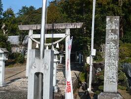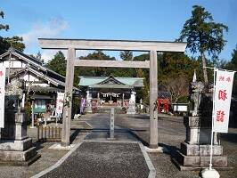 日本武尊を主祭神とする神社で、御笠殿社(みかさどのしゃ)と呼ばれていたらしい。日本武尊の能褒野(のぼの)陵墓と伝えられた白鳥塚古墳の横に鎮座し、尊が死の間際まで持っていたといわれる笠と杖をご神体として祀られている。 |