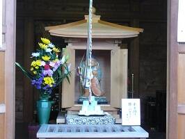 本堂左側の建物、観音堂に恵比寿天さんはいらっしゃいます。恐らく、七福神巡り期間は前に出して見やすくしてもらっているんではないかと。じゃないと観音様の前にでん!っていることになっちゃう。御本尊は大日如来。多摩八十八ヶ所、多摩川三十四ヶ所、武相四十八観音の札所でもあります。 |