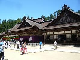 | 奥之院を参拝した後、金剛峰寺へ。って言うか、高野山全体が「高野山 真言宗 総本山 金剛峰寺」じゃないの?公式HPにそんなこと書いてあったような。でも、単体で金剛峰寺があり、別に金堂がありと・・・。いやはや何だかよく分からんねぇ。にしてもこんな山奥に街を作っちゃうんだから凄いなと。今では車や電車で行けるけど、昔って・・・。 | ![]() |