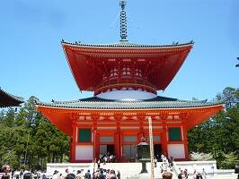 奥之院、金剛峰寺を訪れた後、壇上伽藍へ。金剛峰寺から歩いて5分少々。弘法大師が高野山に入ってまず整備したエリアらしい。時間はお昼前11時くらいだったかな?人がもの凄い多くなってきてた。大伽藍というだけあって、それぞれの建物が凄い。それぞれゆっくり見たかったけど、なにせ人が多くて・・・。 |