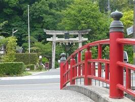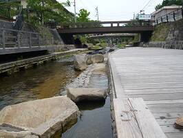 参拝後、宿に戻る間に川にある足湯に入ってみる。ふむふむ、なかなか雰囲気あっていいんじゃん。平日で人もいないし。と思いながら足を入れたら・・・。アッツーー!熱っ!アツイ!熱い!熱湯ですわコレ。足が赤くなってちょうど赤い靴下みたいに!いつもこうなのかは知らんけど、みなさん気を付けて。 |