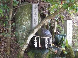 どうやら有名な願い叶い石。社務所で「叶い石」という天然石を授けてもらって、この石に当ててパワーを注入。「叶い石」についているお守り袋に入れればお守り石の完成って話。行ったときはおばちゃん軍団もとい女子会旅の人らが占有中。後ろで待っているカップルが困惑顔・・・。 |