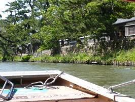 カラコロ広場から松江城入口までと、その帰り堀川めぐりのの遊覧船に。ぷちだぼんは船は苦手だけど、この手のは好きらしい。松江の堀川めぐりは途中橋の下を通るときに、屋根を下げたりなかなか楽しい。行きはベテランだったけど、帰りは新人。両方味わえてよかったかな。 |