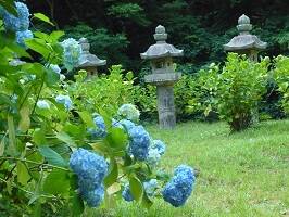 山陰のあじさい寺と呼ばれるだけあtって、お庭のあちこちにあじさいが咲いていました。2万本?3万本?だかあるそうで。なんとなく、灯篭とあじさいって合う気がするのよね。小さい頃に鎌倉で見たせいだろうか・・・。 |
