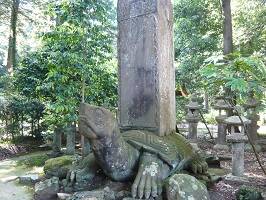 奥のほうに入っていくと登場する大亀さん。亀さんは1mくらいあって、その上に3mの石碑が乗っている。この亀さん、夜中に悪さするってんで、石碑を乗っけられこの地に封じ込められたとの伝説も。ってか本当にこの亀さんリアルで、場所も薄暗いところなのよね。夢に出そう・・・。 |