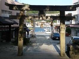 松江から美保関へ車を走らせる(美保関も松江市なのは後で知った)。意外と遠かった。途中、ハンドル操作を誤ったら海に落ちるって感じの海沿いの道を走る。後ろから超豪華な車が追ってくる(?)のが気になるところ。ってか、時間がやばい。何時までか明確に書いていないのが神社仏閣の困るところでもある。 |