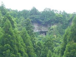 遥拝所にある望遠鏡にカメラを当てて撮ってみました。意外と撮れるんだね。ちなみに投入堂は三佛寺の境内からは見れません。三佛寺からちょっと先に行った遥拝所から見れます。まぁ、実際に投入堂のところまでいけば見れるけど・・・。 |
