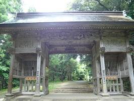 途中立派な門がありました。すんばらしい彫刻です。特に説明もなかったけど、なかなかのモノですよこれは。で、門の向こうに見える参道。いねぇ、ワクワクするねぇ。絵になるねぇ。でも人いるかなぁと心配したけど、社務所にちゃんと人がいらっしゃいました。 |