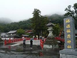 清水寺を思わせる舞台造り(本当の呼び方は知らんけど)でほかの稲荷神社とはちと違う印象。例の千本鳥居みたいのはないのかな?と思ったら、奥の院に向かう途中にあるみたい。雨の中だったので行かなかったけど。鎮西日光と呼ばれるだけあって、彫刻とかもキレイだった。 |