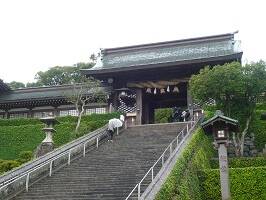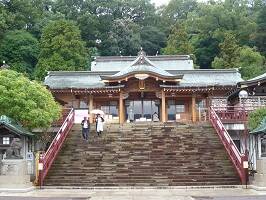にしても、長崎市内は修学旅行生が多い。どこ行ってもゾロゾロと。なかなか立派な神社で新しいのかな?と思って調べたら昭和59年の360年祭、平成6年の370年祭で、二度の造営を行って今の社殿になっているんだそうだ。ところでぷちだぼんが見当たらない。行方不明だ。 |